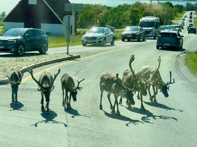 And I did recognize some of the places he references. In fact, in Tromsø, Norway, our tour bus was held up for a few minutes by reindeer in the road: